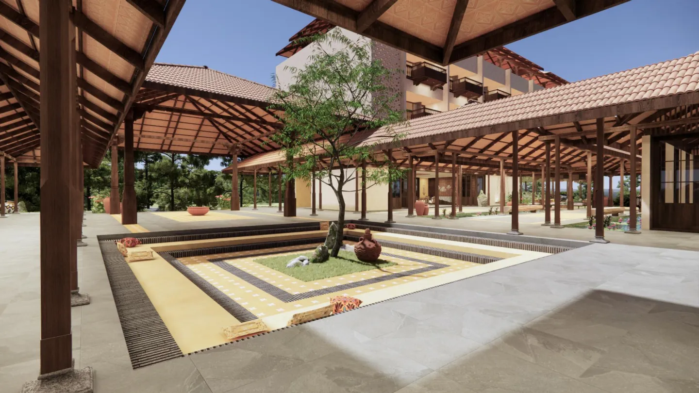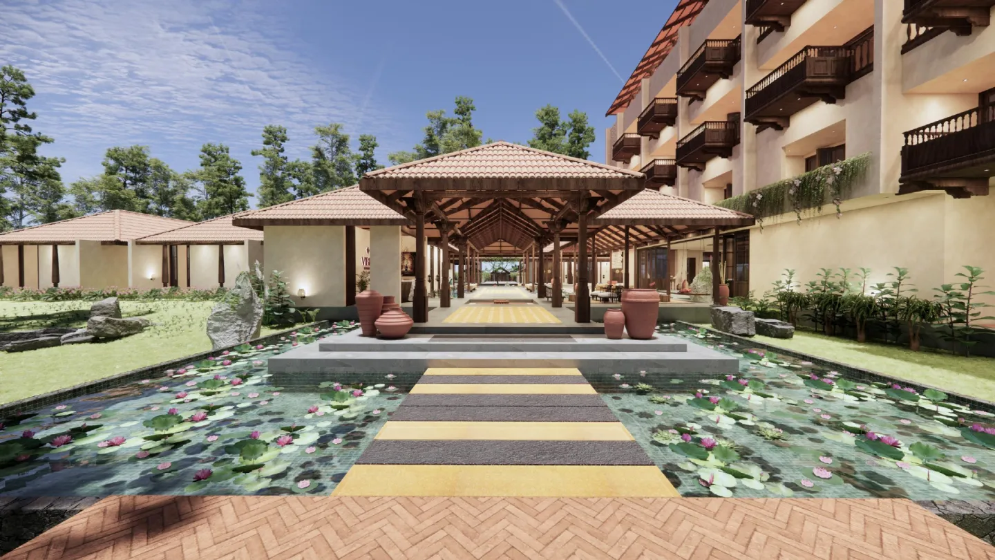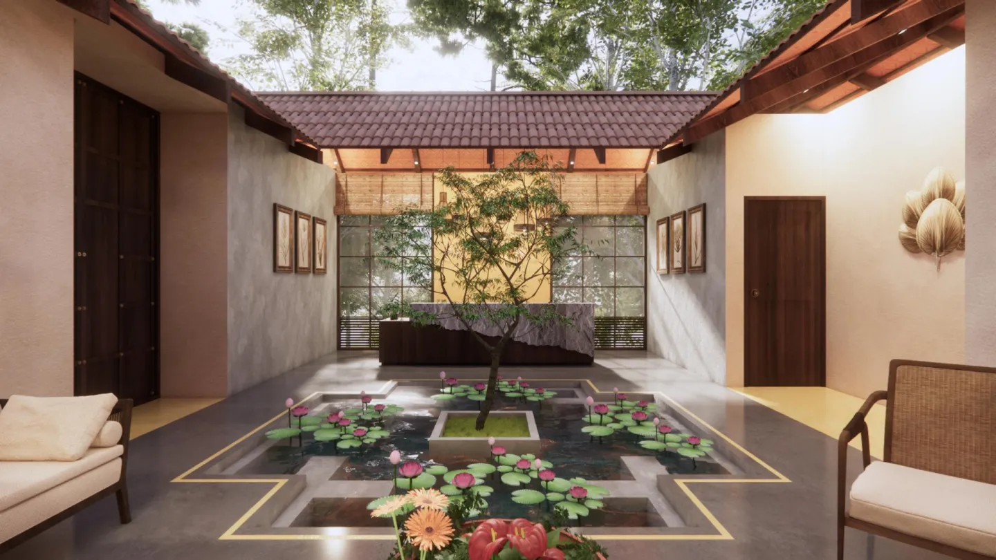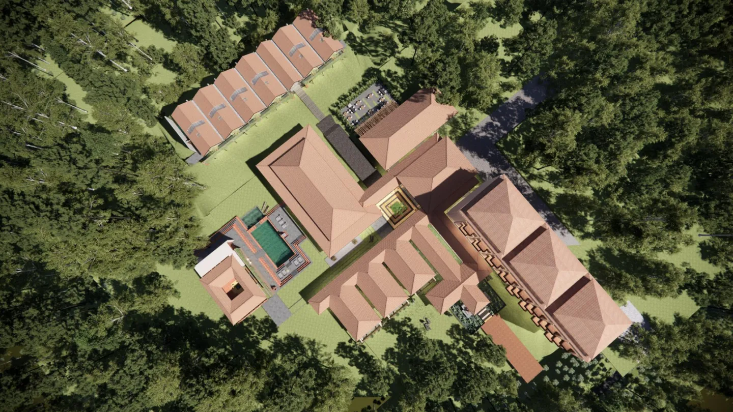 Every element — from the biophilic pond to the managed coffee rows — has been intentionally placed.